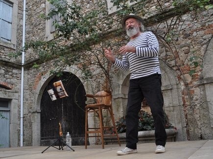 Alexis Abbou est comédien depuis 35 ans mais surtout mordu des textes de Boby Lapointe, qu’il est venu réciter, mercredi 20 août, dans la cour de la maison Bellot. Pour l’occasion, il avait revêtu un pull rayé semblable à celui du chanteur, le célèbre compositieur-interprète connu pour son esprit caustique et son style très marginal.